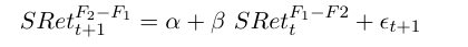 The edge we’re trying to capture here is that the weekly return spread exhibit a strong negative autocorrelation. That basically means, when the spread is is high one week, it tends to predict the spread will be lower the following week. The reverse is also true. This relationship is captured in the regression below, where we expect the coefficient to be negative